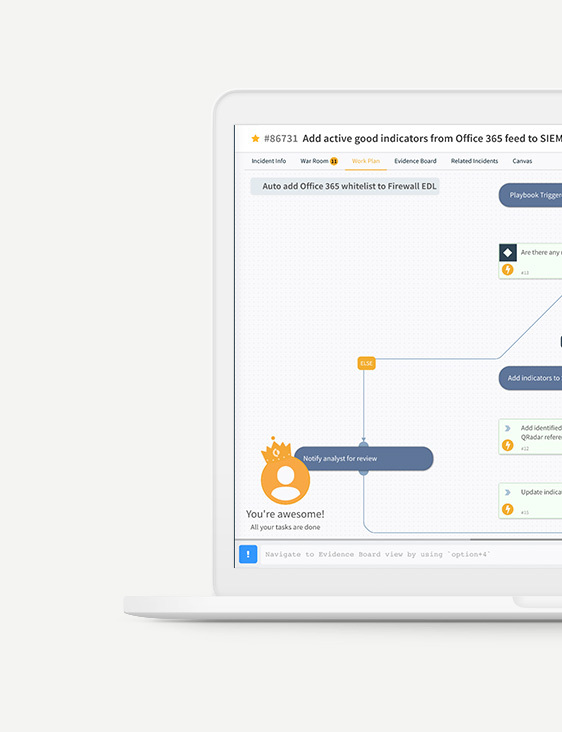 Les outils d’orchestration, d’automatisation et de réponse à incident (SOAR) s’appuient sur une automatisation basée sur les playbooks pour combiner la gestion des cas, l’automatisation des processus et la Threat Intelligence.