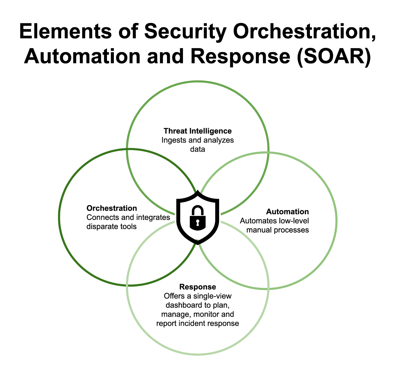 Selon la définition de Gartner, une solution SOAR complète assure trois fonctionnalités logicielles principales : gestion des menaces et des vulnérabilités, réponse aux incidents de sécurité et automatisation des opérations de sécurité (SecOps).