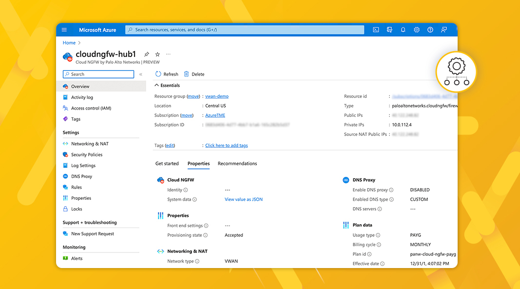 Bénéficiez de la simplicité et de la rapidité du cloud-native. Créez et gérez vos ressources Cloud NGFW pour Azure depuis le Portail Azure. Vous pouvez ensuite piloter vos politiques de sécurité via le système de gestion Panorama de Palo Alto Networks, ou en restant sur le Portail Azure. Pour encore plus de simplicité, les services peuvent être achetés directement sur la marketplace Azure.