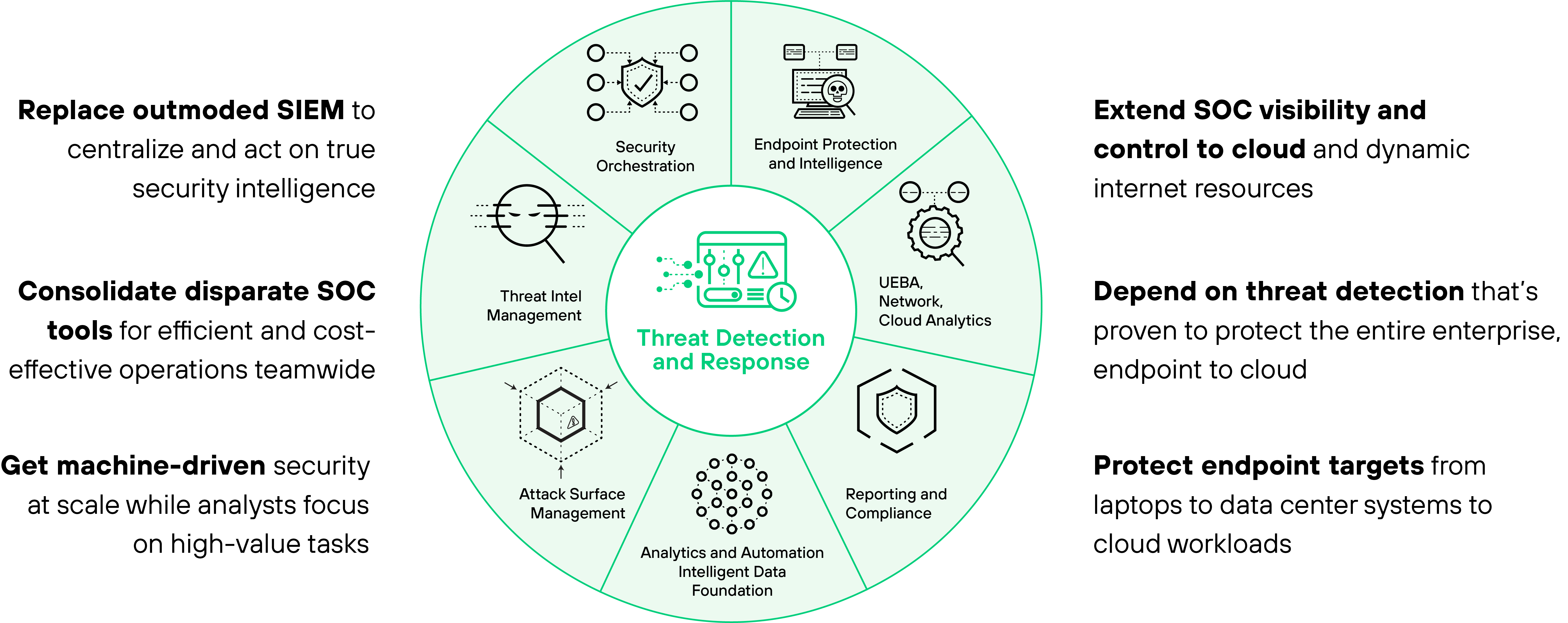 - Protection accélérée contre les menaces sophistiquées sur l’ensemble des points de contrôle ; optimisation des politiques de sécurité des terminaux ; création de corrélations ; bonnes pratiques SecOps, méthodologie de gestion des incidents ; et création de playbooks