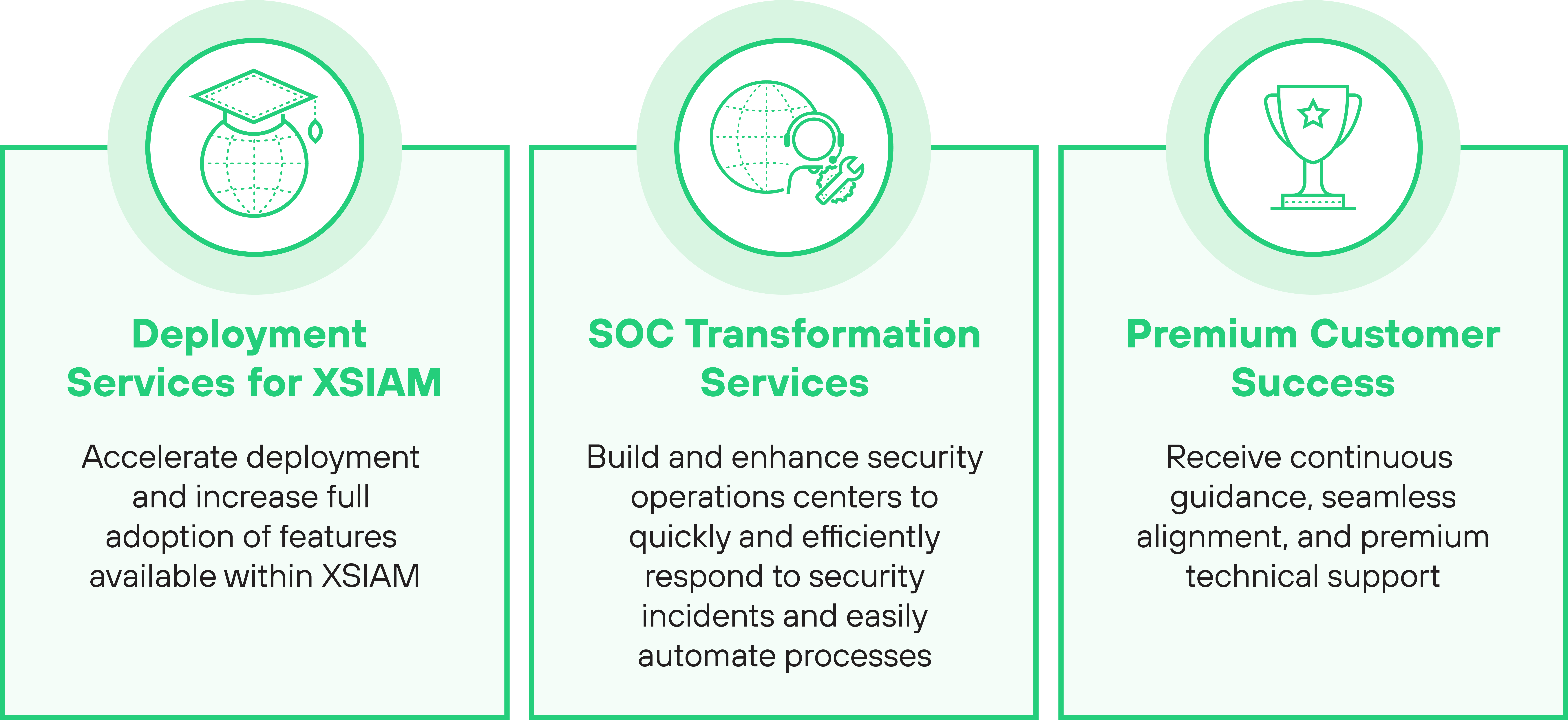 Les services de déploiement XSIAM favorisent l’adoption des fonctionnalités de la solution et accélèrent sa rentabilisation.